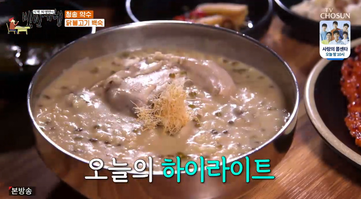 닭다리만 넣고 삶은 닭백숙이라고 합니다, 오늘의 하이라이트라고 하네요