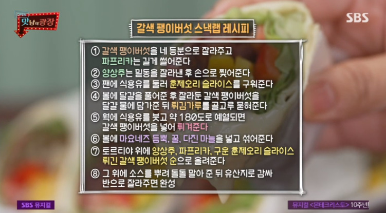 맛남의광장 49회 유병재 아린 갈색팽이스낵랩 수제갈릭디핑소스 레시피 만드는법
