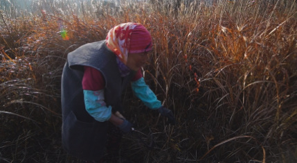 채옥 씨 키만큼이나 자란 억새를 베는 손길이 분주한 이유는 다가올 봄,