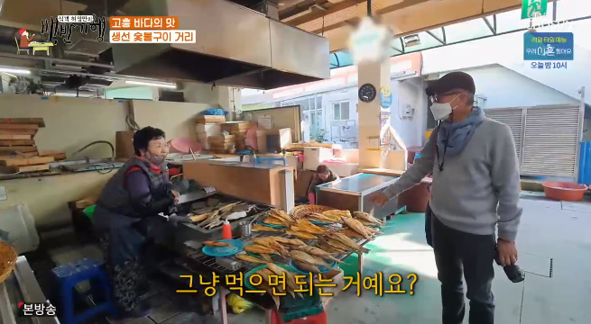 허영만은 식사를 하러가는길에 고흥 생선 숯불구이 거리를 지나갑니다.