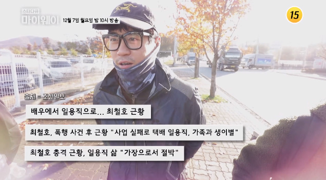 택배 일용직을 하고 있다는 최철호는 물류센터에서 하차일을 하고 퇴근하는 길이라고 하네요