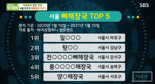 빅데이터 랭킹 맛집 코너에서는 서울 최고의 뼈해장국 TOP5편이 방송 되었습니다.
