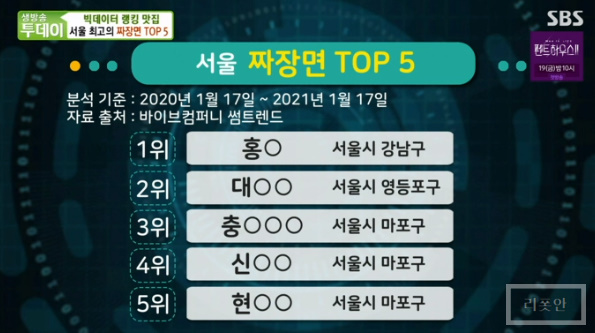 빅데이터 랭킹 맛집 코너에서는 서울 최고의 짜장면 TOP5 편이 방송 되었습니다.