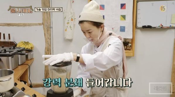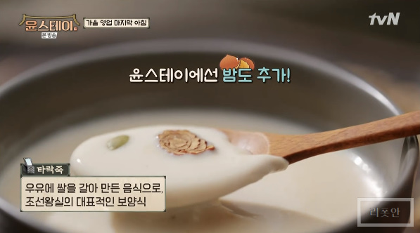 윤스테이에선 밤도 추가하여 밤타락죽을 정유미가 만들었습니다.
