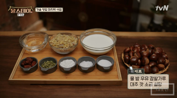 윤스테이 6회 가을 영업 마지막 아침 정유미 밤타락죽 레시피 만드는법