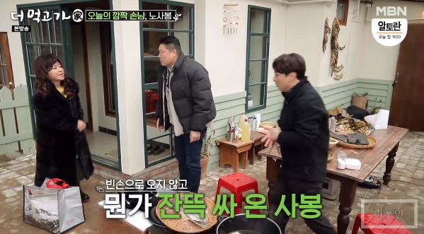 한식당 20년째 운영중이라는 노사연 언니 노사봉ㅆ는 한짐 가득 챙겨 왔는데요