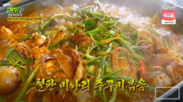 미나리와 함께 싱싱한 주꾸미를 넣어 철판에 볶아 먹는 철판 미나리 주꾸미 볶음을 맛봅니다.