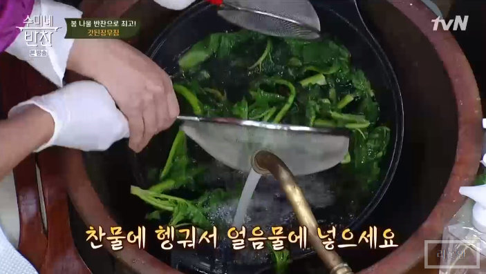 찬물에 헹군뒤 얼음물에 담궈 쓴맛을 빼주세요