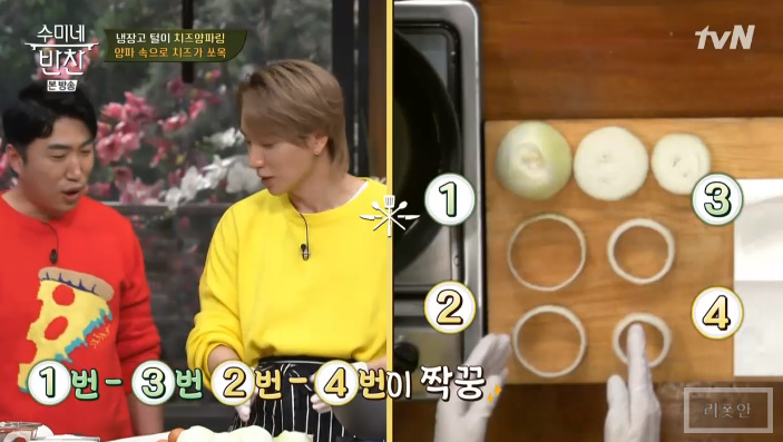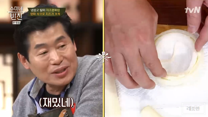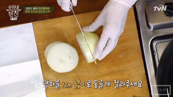 오늘 수미네반찬 제자들의 냉장고 털이 음식으로 이특은 양파를 이용한 치즈양파링 레시피를 공개 했습니다.
