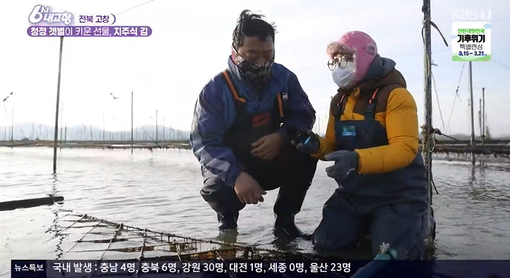 오늘 전북 고창에 청정 갯벌이 키운 선물 지주식 김이 소개 되었습니다.