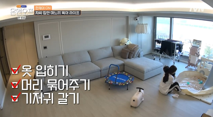 온앤오프 36회 한채아 집 공개 인테리어 소품 육아용품 가전 가구 보기