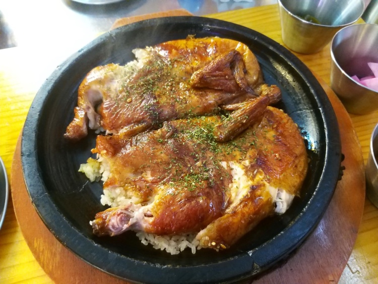 돌판에 올려진 누룽지 한방 통닭은 바닥까지 긁어먹는 치명적인 맛이라고 하네요
