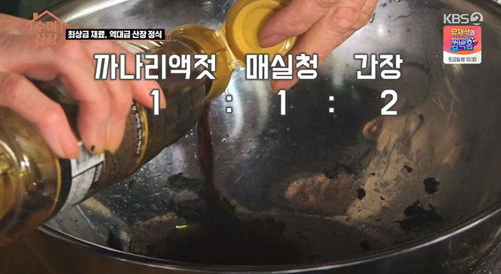 수미산장 레시피 에서는 정확한 계량은 나오지 않았습니다.