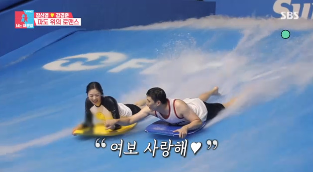 동상이몽 강경준,장신영 실내 서핑