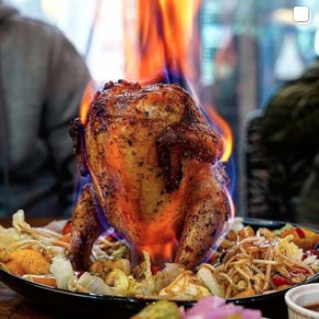 앉아 있는 통닭으로 이미 방송에서 소개된 이곳의 비어캔치킨과 크림파스타 등 다양한 종류의 수제 음식을 판매 하고 있습니다 그중 화려한 불쇼는 덤으로 즐길수 있는 앉아있는 통닭 불멍을 할수 있는 불멍통닭이 인기 메뉴라고 하네요