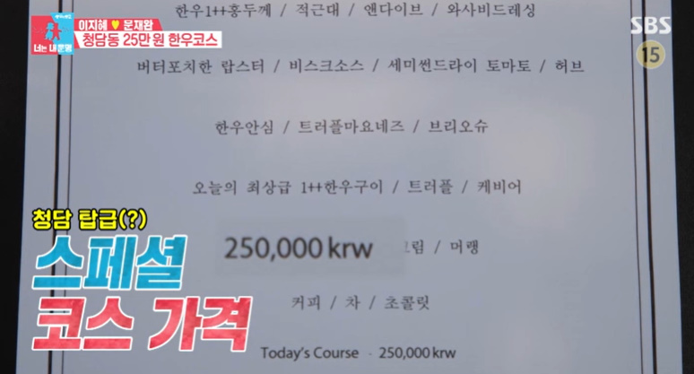 이지혜 문재완 1인 25만원 고급한우코스요리 레스토랑 가격 위치
