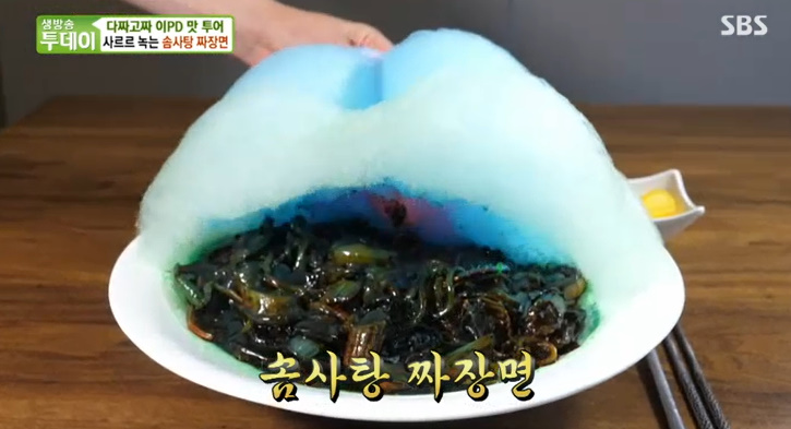 짜장면의 열기에 솜사탕이 녹아내리면 비벼 먹는다는 솜사탕짜장면 맛이 상상이 가질 않는데요