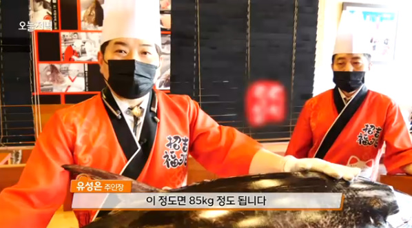 대형참치를 통으로 들여와 직접 해체한다고 하네요