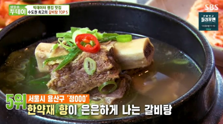 생방송투데이 빅데이터 랭킹 맛집 수도권 최고의 갈비탕 TOP5 용산구 으뜸갈비탕 파는곳 고깃집 위치 어디