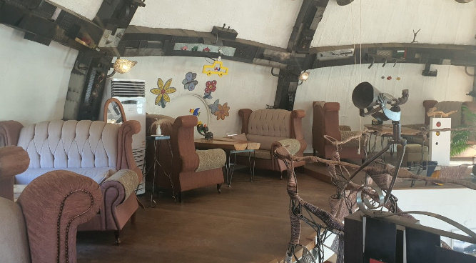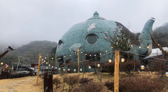 대형 램프 속에서 커피 한 잔의 여유를 즐길 수 있다고 해서 찾아간 곳은 전라남도 장성! 깊은 산골짜기로 들어가 보면 주전자의 우뚝 솟은 손잡이가 먼저 반겨준다는 이곳. 바로 청자 주전자를 모티브로 한 주전자 카페란다. 넓은 마당 곳곳을 채운 곳은 세월의 흔적이 고스란히 느껴지는 조각품들! 단아한 청자 카페 역시 문을 열고 들어가는 순간 독특한 세상이 펼쳐진단다.