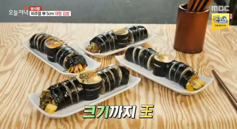 분식왕 코너에서는 하루 500줄 판매! 5cm 대왕김밥 맛집이 소개 되었습니다.