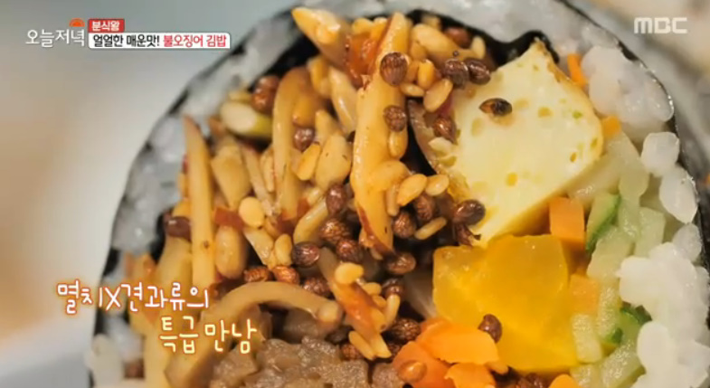생오징어를 매운 양념에 버무린 매콤한 불오징어 김밥!