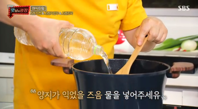 5. 양지가 익었을때 물2L을 넣어 주세요