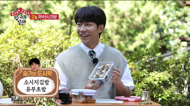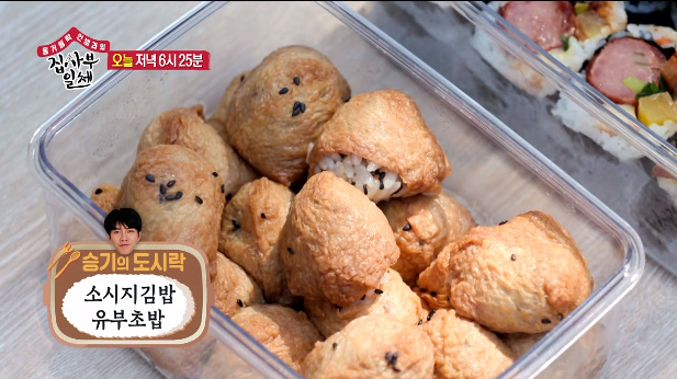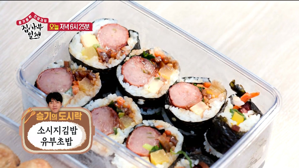 이승기는 소시지김밥과 유뷰초밥을 도시락으로 싸왔습니다.