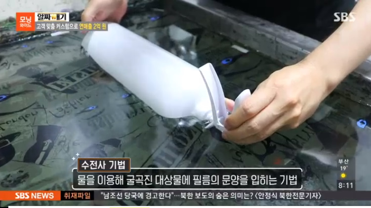 수전사 기법으로 물을 이용해 굴곡진 대상물에 필름의 문양을 입히는 기법이라고 합니다.