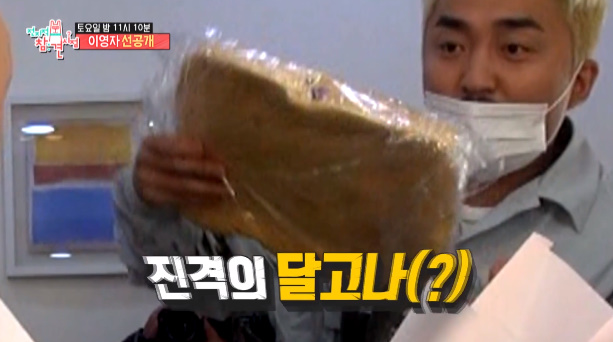 유병재는 꽃과 치킨을 좋아하는 영자를 위해 프라이드 치킨 꽃다발과 대왕 달고나를 준비해왔습니다.
