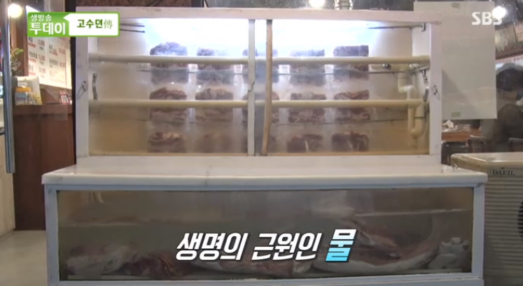 수조같은 곳에 고기가 보관되어 있는데요